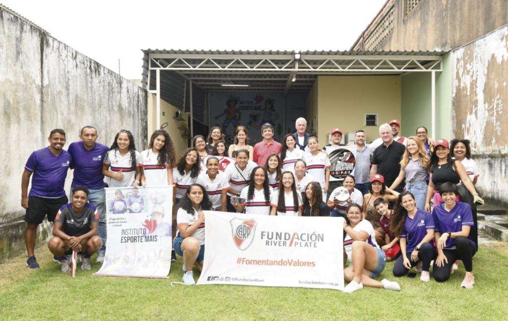 A través de su programa “Sin Fronteras”, Fundación River Plate viaja a los lugares a los que le toca presentarse a la 1ra división de fútbol masculino para dejar una marca de compromiso y solidaridad en los clubes de barrio y organizaciones sociales que trabajan con el fútbol como herramienta de integración social.  En esta oportunidad, Clara D’Onofrio (Presidenta de Fundación River), Matías Patanian (Vicepresidente CARP) y Eduardo Barrionuevo (Vocal CARP) y representantes de la Filial de Bahía, visitaron y acercaron donaciones de material deportivo al Instituto Esporte Mais que lleva adelante el proyecto “Futebol Pela Igualdade”.